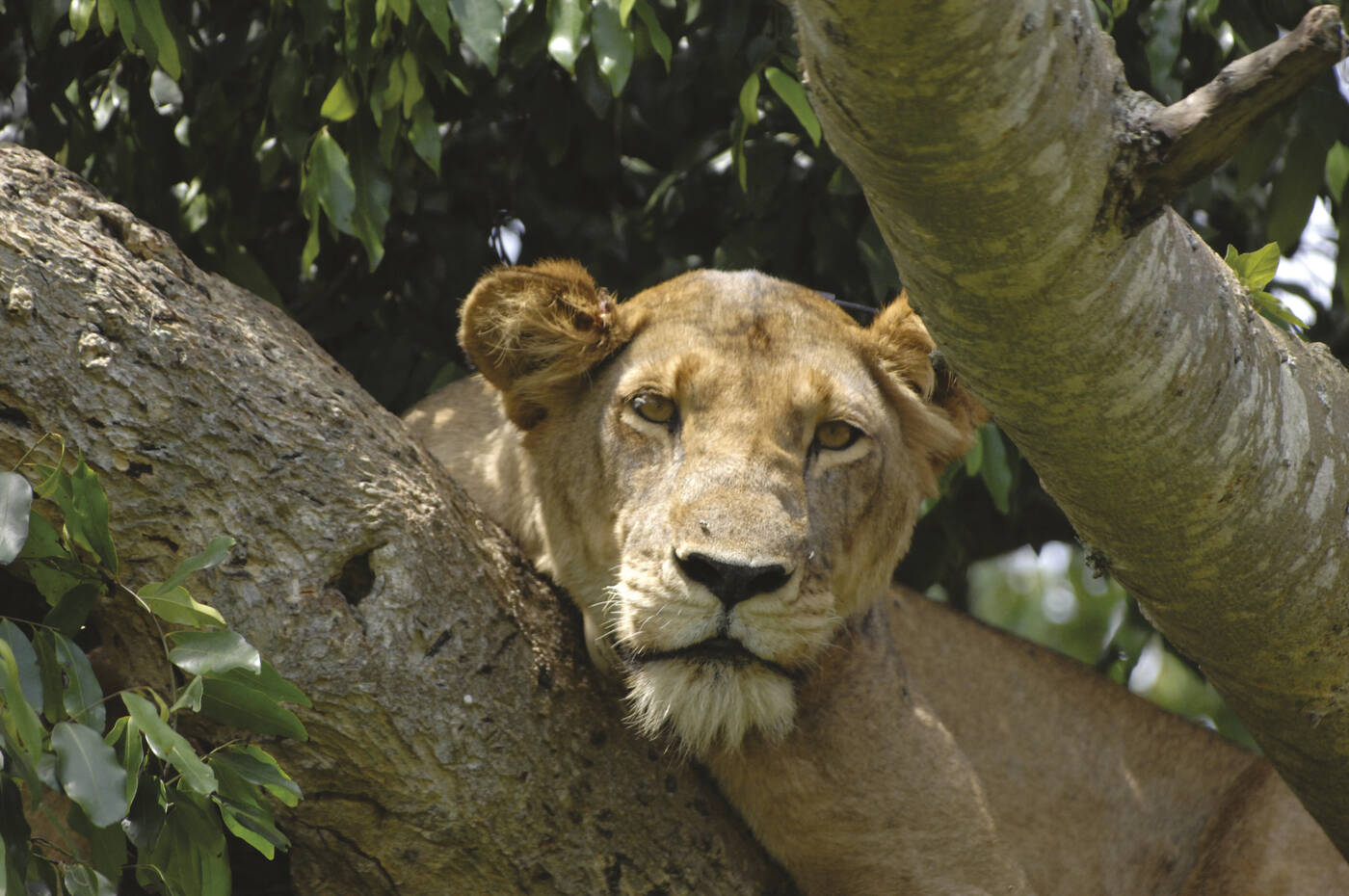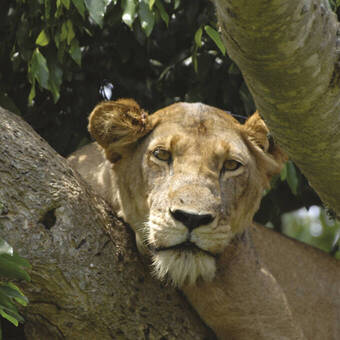 In den frühen Morgenstunden geht es auf dem Channel Track zur Kyambura Schlucht (35 km). Hier hat sich - inmitten der ariden Savannenlandschaft des Queen Elizabeth Nationalparks - in einer 100 Meter tiefen Senke ein feuchtes Biotop mit dichtem Primärwald erhalten. Auf einem rund zweistündigen Rundgang können wir mit etwas Glück Flusspferden, Waldelefanten und vor allem 24 Schimpansen begegnen. Die hohen Baumkronen tropischer Kapokbäume und Affentopfbäume verleihen dem Besucher das Gefühl, in "Tarzan's Dschungelwelt" angekommen zu sein. Noch am Spätvormittag Fahrt in den rund 70 Km entfernten Ishasha Sektor des Queen Elizabeth Nationalparks. Auf dem "Northern Trail" ist die Wahrscheinlichkeit groß, Topi, Impala, Wasserbock, Büffel, Buschbock, Sitatunga Antilope aber auch Elefant, Leopard und Hyäne anzutreffen. Ein besonderes Augenmerk wird unser Ranger auf die berühmten baumkletternden Löwen werfen. Um der Hitze des Tages zu entgehen und um sich für die nächtliche Jagd auszuruhen, klettert der König der Tiere auf die weit ausladenden Äste alter Feigenbäume und ist durch nichts aus der Ruhe zu bringen. Der Anblick von Löwen auf Augenhöhe von einem Safarifahrzeug mit offenem Hubdach ist sensationell und insbesondere für Fotografen ein lohnendes Bildmotiv.