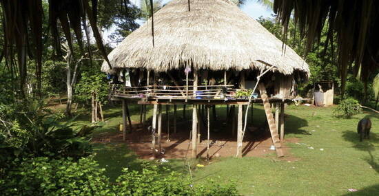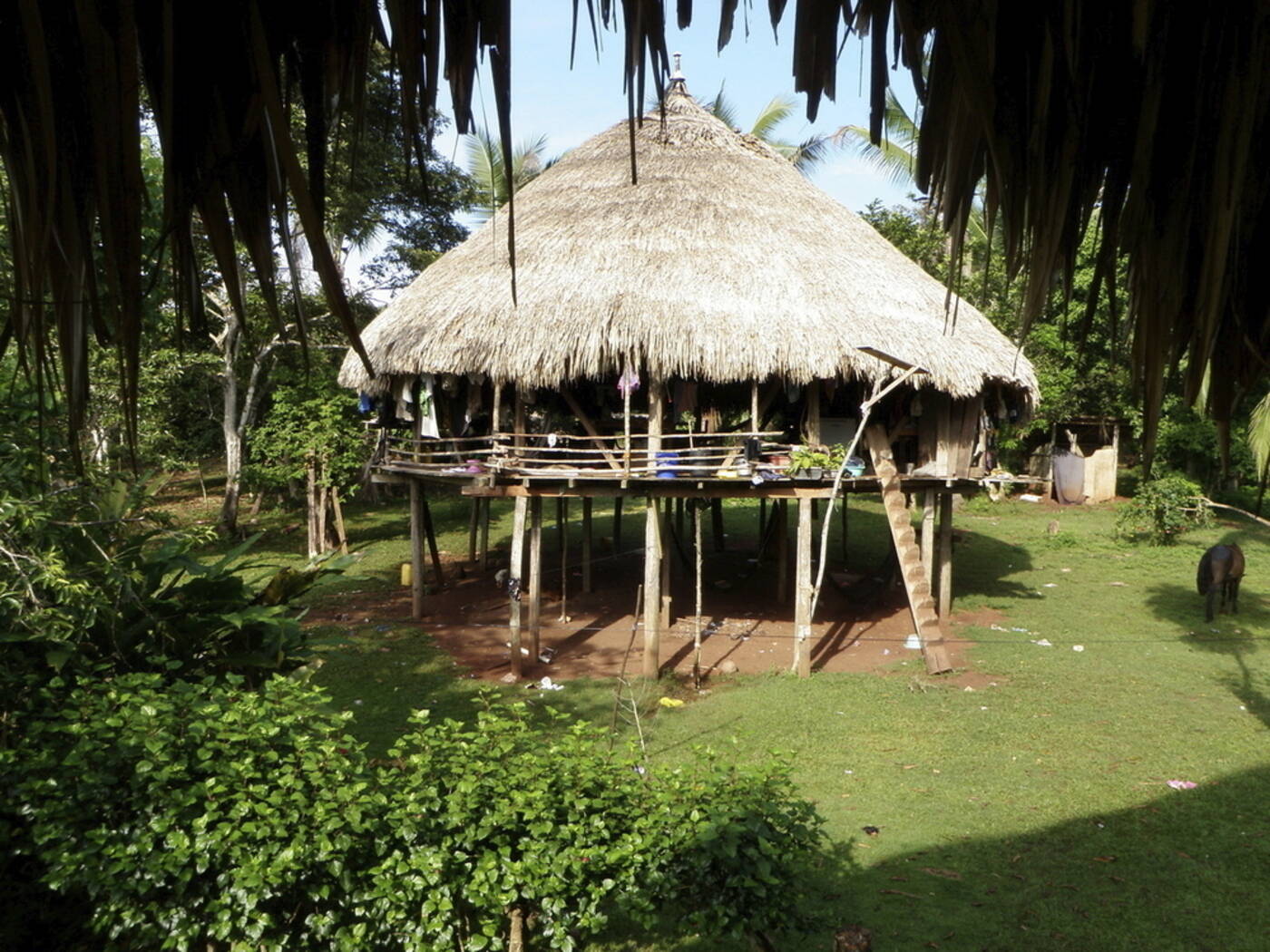 Die Emberahäuser sind an das tropische Klima angepasst: offene Plattform ohne Wände auf Stelzen und mit Palmblattdach. Hier werden unsere Zelte aufgebaut, in denen wir auf Luftmatratzen mit Leintüchern schlafen. Sie bieten etwas Privatsphäre und dienen gleichzeitig auch als Mückenschutz. Es besteht auch die Möglichkeit, in Hängematten zu schlafen. Toiletten und Duschen sind separat, etwas vom Haus entfernt.