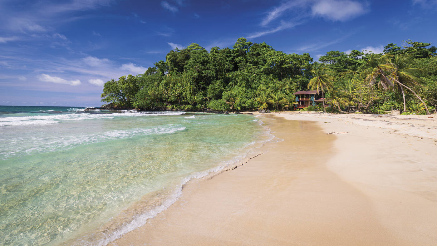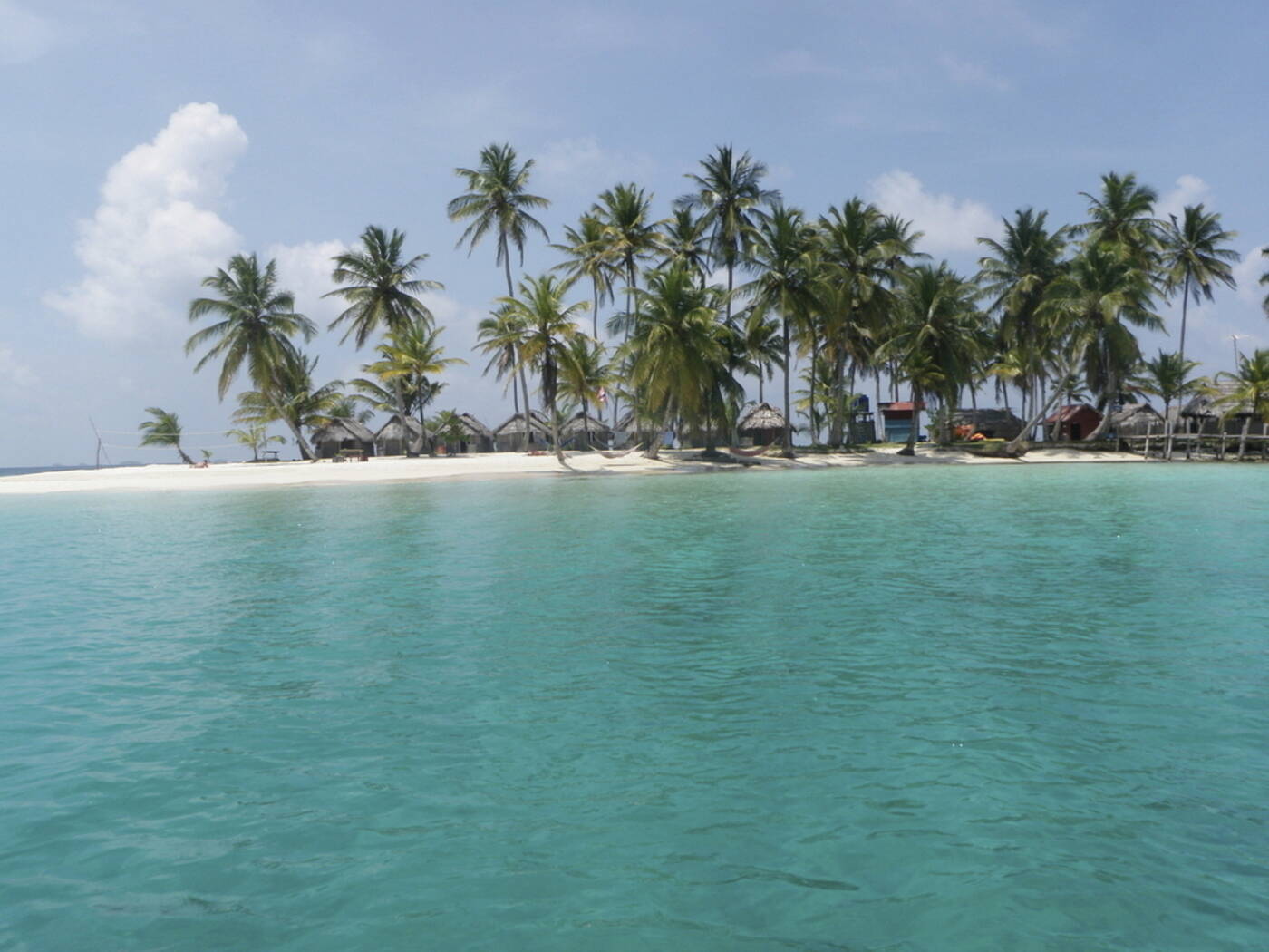 Das Emberadorf verschwindet hinter den Bäumen und den Flussbiegungen. Zurück auf der Panamericana geht es nach etwa vier Fahrstunden weiter auf einem kleinen Sträßchen für etwa eine Stunde über die Berge und durch den Regenwald hinunter zur Karibikküste. Die Überfahrt zu einer der vielen kleinen Koralleninseln dauert etwa eine halbe Stunde.