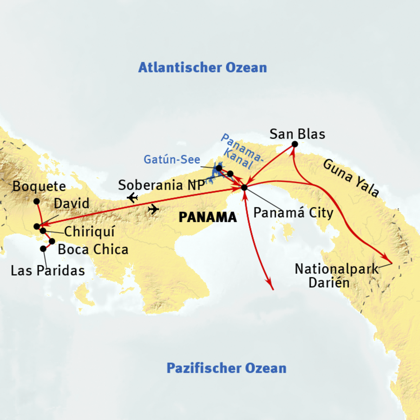 Panama City - Soberania NP - Gatunsee - David - Boca Chica - Las Paridas - Boquete - Darien - San Blas Inselwelt