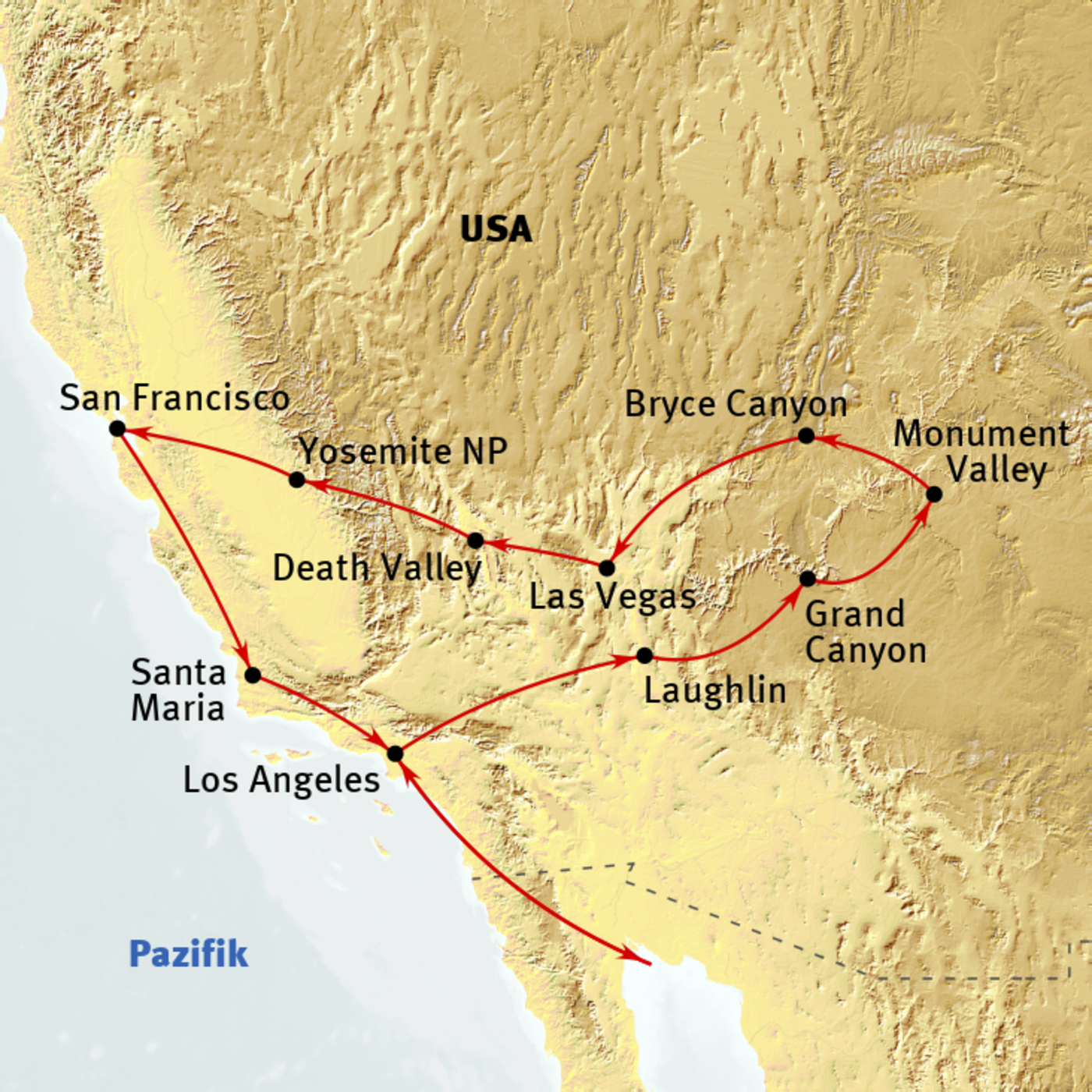 - dazu die faszinierenden Metropolen Los Angeles, Las Vegas und San Francisco