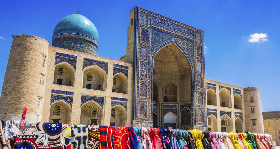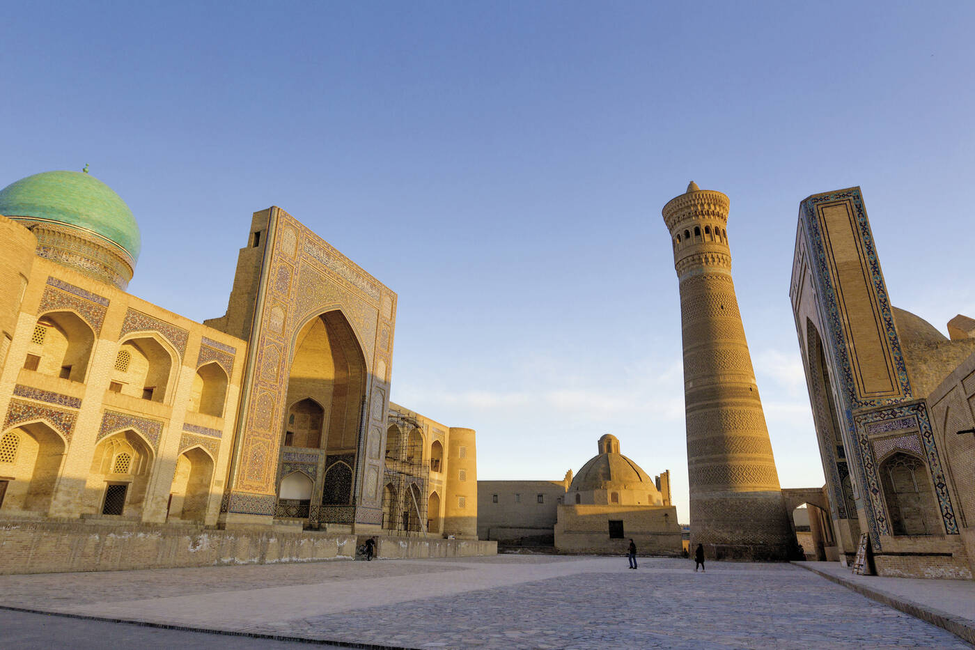 Legendär reich war einst die Oasenstadt Buchara, ein wichtiger Knotenpunkt an der Seidenstraße, Sitz des eleganten Samanidenhofes und Zentrum des Islams in Zentralasien. Noch heute schimmern die Kuppeln blau und glänzen die Fassaden der Medresen und Moscheen. Die Altstadt Bucharas ist intakt und das Leben nimmt in den Gassen zwischen den Lehmhäusern seinen gemächlichen Gang. Den Vormittag über besichtigen Sie die Zitadelle Ark, einst Regierungssitz und Palast der Herrscher von Buchara. Danach besuchen Sie das Mausoleum Chaschma Ayub und das berühmte Samaniden-Mausoleum, in einer schönen Parkanlage gelegen. Außerdem besuchen Sie den Labi Hauz-Komplex, die historischen Marktkuppelbauten, die Medresse Ulugbek aus dem 15. Jhd. und schließlich den Poikalon-Komplex mit dem berühmten, 46 m hohen Minarett Kalon, dem Wahrzeichen Bucharas. Abendessen mit dem lokal typischen Puppentheater oder Folklore, vorbehaltlich Rückbestätigung.