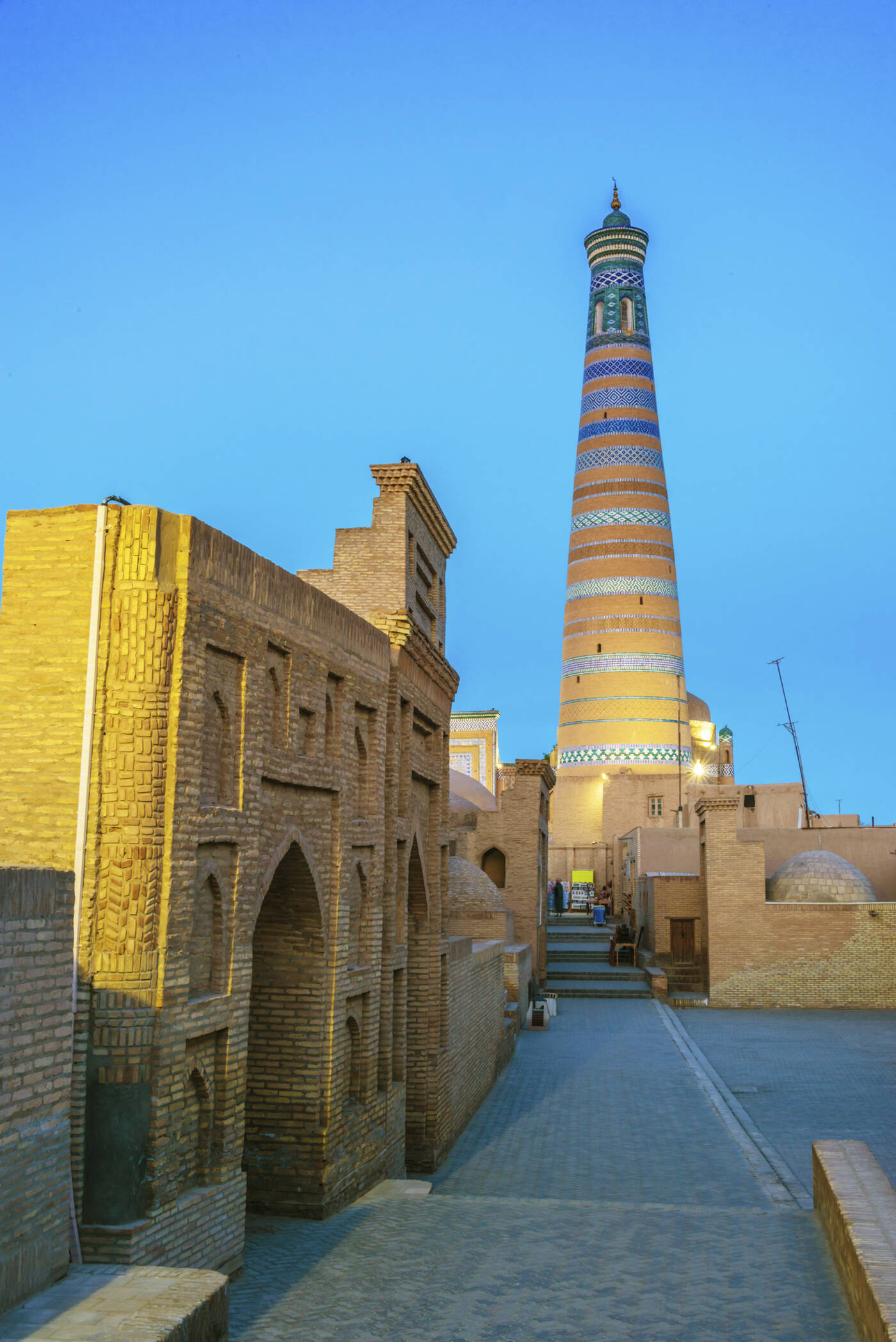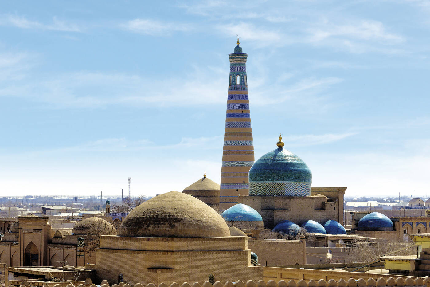 Die 2.500 Jahre alte Oasenstadt Chiva ist ein Juwel in Türkis und mit ihren intakten Altstadtmauern so etwas wie ein belebtes Freilichtmuseum. Orientalische Ornamentik, schattige Innenhöfe, das warme Leuchten der Mauern aus Lehm, sowie Moscheen, Medresen, Mausoleen und Minarette – alle verziert mit Tausenden türkisfarbener Fliesen. All das werden Sie am heutigen Tag entdecken können. Die Altstadt mit ihren Lehmstraßen ist auch heute noch von einer nahezu vollständig erhaltenen Stadtmauer umgeben und wurde zum UNESCO-Weltkulturerbe erklärt. Sie besichtigen die Kunya Ark-Zitadelle, einst Residenz des Chans von Chiva. Von hier haben Sie einen guten Blick über die Stadt. Außerdem besuchen Sie die Juma-Moschee, deren Holzbalkendecke von 215 Säulen getragen wird, die individuell mit kunstvollen Schnitzereien versehen sind. Außerdem sehen Sie den Palast Tasch-Hauli, ein Meisterwerk orientalischer Architektur. Weiter geht es zum Islam Khodja-Minarett und -Medresse und schließlich zum Pakhlavan Makhmud-Komplex.