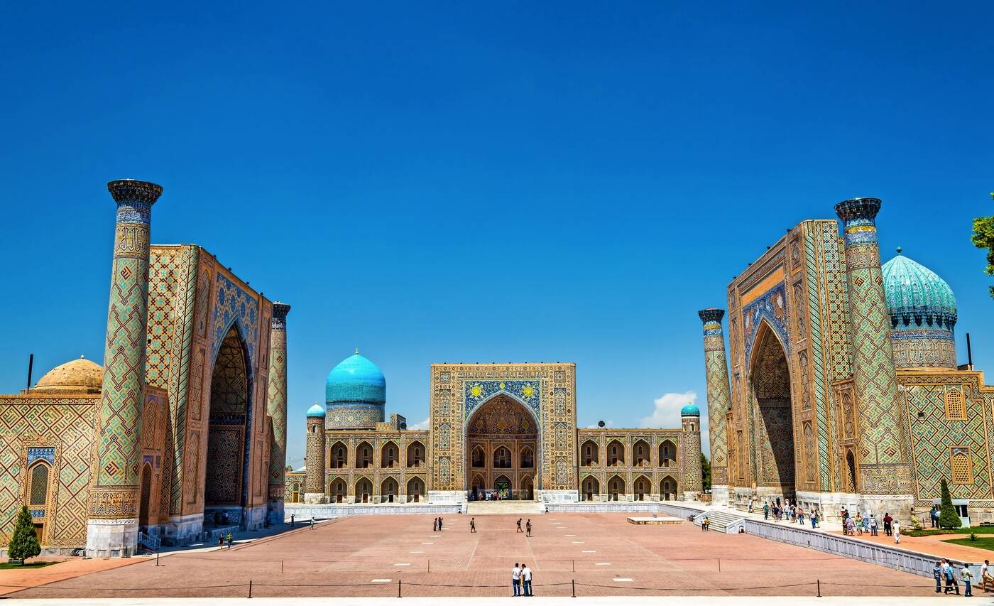Ausführliche Besichtigungen: Sie beginnen mit Gur-e-Amir, das palastartige Mausoleum des Mongolenherrschers Timur, dessen melonenförmige Grabkuppel seit Jahrhunderten zu den Wahrzeichen der Stadt gehört. Von hier aus weiter Richtung historisches Zentrum, mit dem berühmten Registanplatz, der von drei prachtvollen Medressen eingerahmt wird. Mit der gewaltigen Moschee Bibi Chanim aus dem frühen 14. Jhd., einem Besuch des in der Nähe befindlichen Basars und der Besichtigung der Gräberstraße Schah-e-Sinde. Am Abend traditionelles Abendessen bei einer usbekischen Familie - Plovkochen.