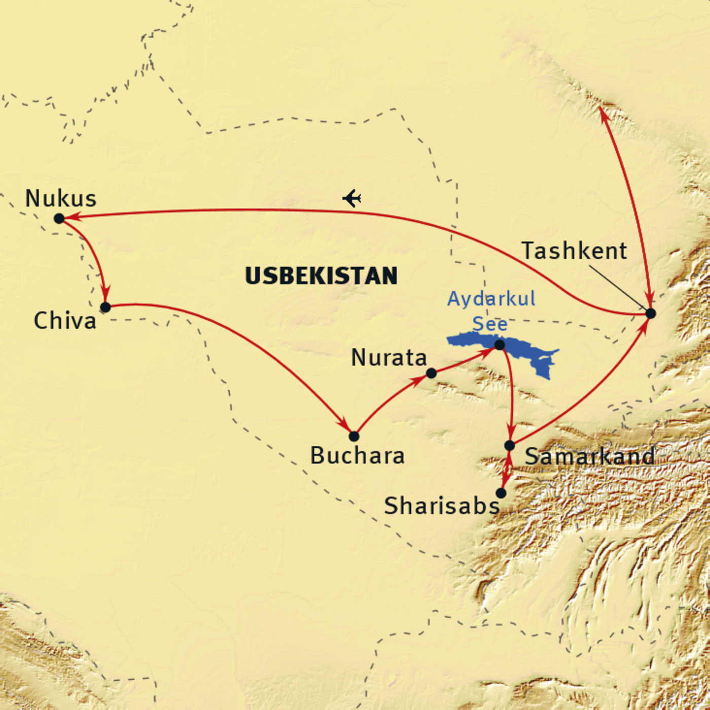 Taschkent - Nukus - Chiva - Buchara - Nurata - Aysarkul See - Samarkand - Sharisabs - Samarkand - Taschkent