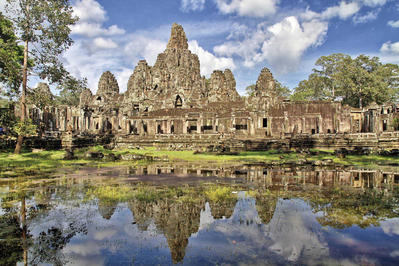 Ausführliche Besichtigung des Zentralbezirks von Angkor: u.a. Angkor Thom mit Südtor, der Bayon, die Baphuong-Pyramide, Phimeanakas, Elefanten-Terrasse und Terrasse des Leprakönigs. Nachmittags Ta Prohm, teilweise malerisch von Urwaldbäumen überwuchert, mit einer ganz eigenen Atmosphäre. Schließlich Angkor Wat, einer der einzigartigsten Sakralbauten der Welt.