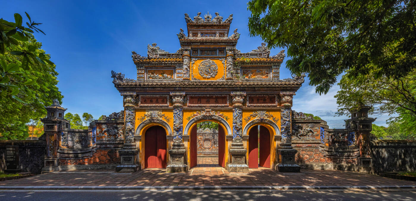 Ein Tag im Zeichen der alten Kaiserstadt Hué. Zunächst unternehmen wir eine Bootsfahrt auf dem Huong Giang, dem sogenannten Parfüm-Fluss, und genießen die ruhige Fahrt zur Thien Mu-Pagode, dem spirituellen Wahrzeichen der Stadt. Anschließend geht es per Rikscha durch das historische Zentrum. Beim Besuch des Kaiserpalasts mit dem Nagamon-Tor, der Verbotenen Purpurnen Stadt und der Halle der Mandarine taucht die Vergangenheit der Nguyen-Dynastie eindrucksvoll auf. Am Nachmittag Besuch des Dong Ba-Markts mit seinen farbenfrohen Ständen, Gewürzen und Stoffen. Den Abschluss bilden die kunstvoll gestalteten Grabmäler der Kaiser Tu Duc und Khai Dinh. Ein spannender Kontrast zwischen traditioneller Harmonie und europäisch inspirierter Monumentalarchitektur.