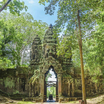 Am Morgen setzen wir die Reise fort in Richtung Siem Reap. Unterwegs Besuch der historischen Naga-Brücke bei Kampong Kdei, ein bemerkenswert gut erhaltenes Bauwerk aus der Angkor-Zeit. Gegen Mittag erreichen wir Siem Reap, charmante Kleinstadt und Ausgangspunkt für die Erkundung der Tempel von Angkor. Nach dem Check-in im Hotel beginnt gegen 16:00 Uhr eine erste Einführung in die spirituelle Welt der Region. Beim Besuch des Schreins von Yay Tep, einer verehrten Sandsteinfigur auf einer kleinen Insel mitten in der Straße, erfahren wir mehr über die lokalen Glaubensvorstellungen rund um den schützenden Ahnengeist der Stadt. Ganz in der Nähe liegen Preak Ang Chek und Preak Angchom, buddhistische Schreine, die für ihre spirituelle Bedeutung und Wahrsagerinnen bekannt sind. Ein Spaziergang führt zu den Geisterhäusern und durch die Königlichen Gärten, die nicht nur durch ihre Atmosphäre, sondern auch durch eine Kolonie riesiger Flughunde beeindrucken. Am Alten Markt, dem Psar Chas, tauchen wir ein in das Alltagsleben: Während ein Teil auf Touristen ausgerichtet ist, deckt sich die lokale Bevölkerung hier mit frischen Lebensmitteln, Haushaltswaren und Streetfood ein. Wer mag, gönnt sich einen Snack, bummelt noch ein wenig oder nutzt einen Remork (lokales Tuk-Tuk) für die Rückfahrt zum Hotel. (281 km)