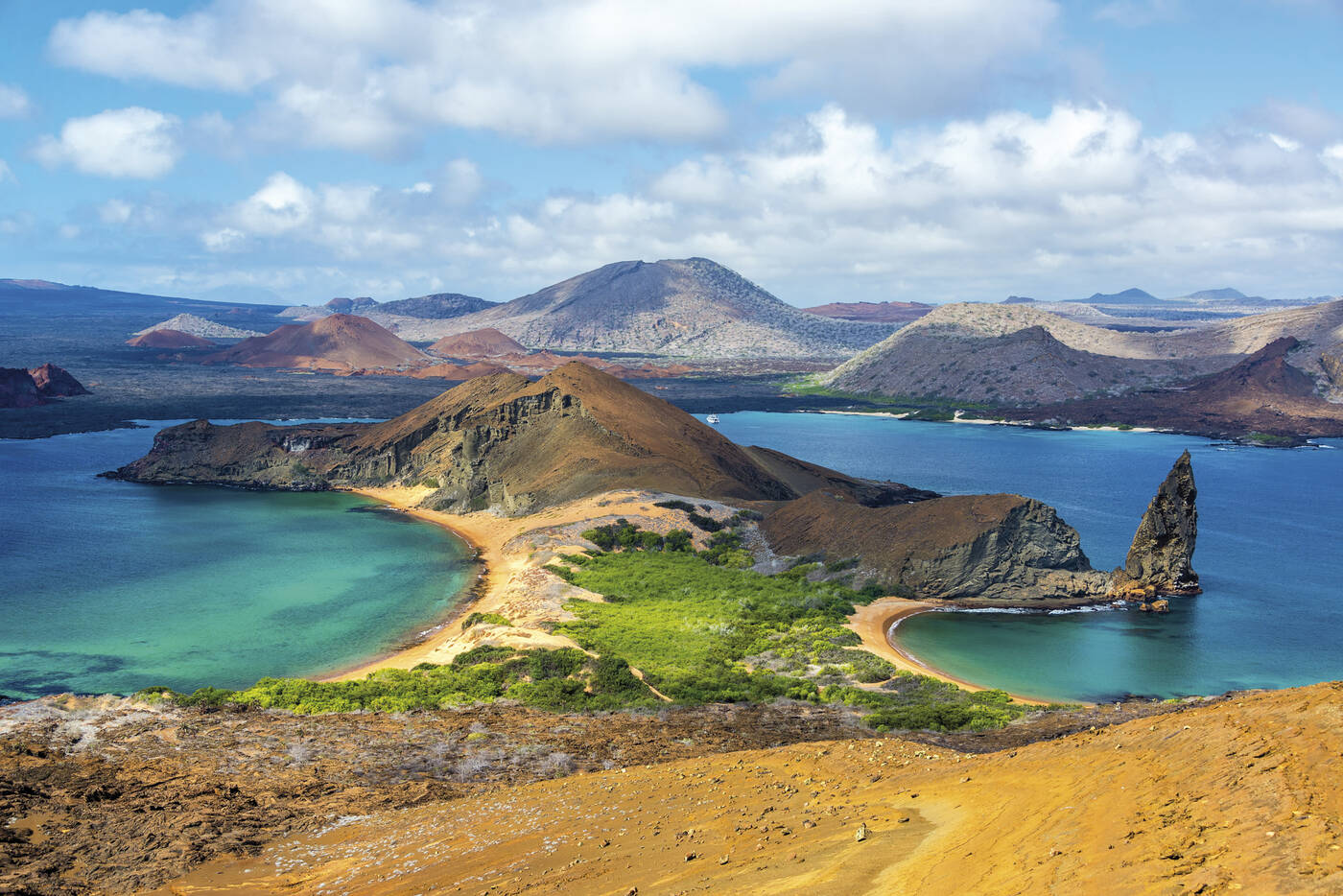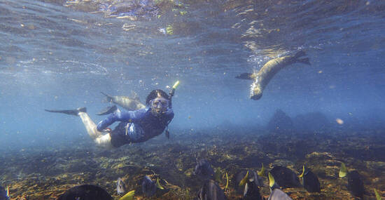 Morgens nasse Landung am weißen Strand von Cerro Brujo: Bei einem Spaziergang am Strand beobachten wir Seelöwen, braune Pelikane und Blaufußtölpel. Anschl. Fahrt um den Kicker Rock (León Dormido), Nistplatz für unzählige Vögel. Nachm. in der Provinzhauptstadt Puerto Baquerizo Moreno (San Cristóbal). Besuch des Galápagos-Informationszentrums mit einem guten Überblick über die Natur- und Siedlungsgeschichte des Archipels.