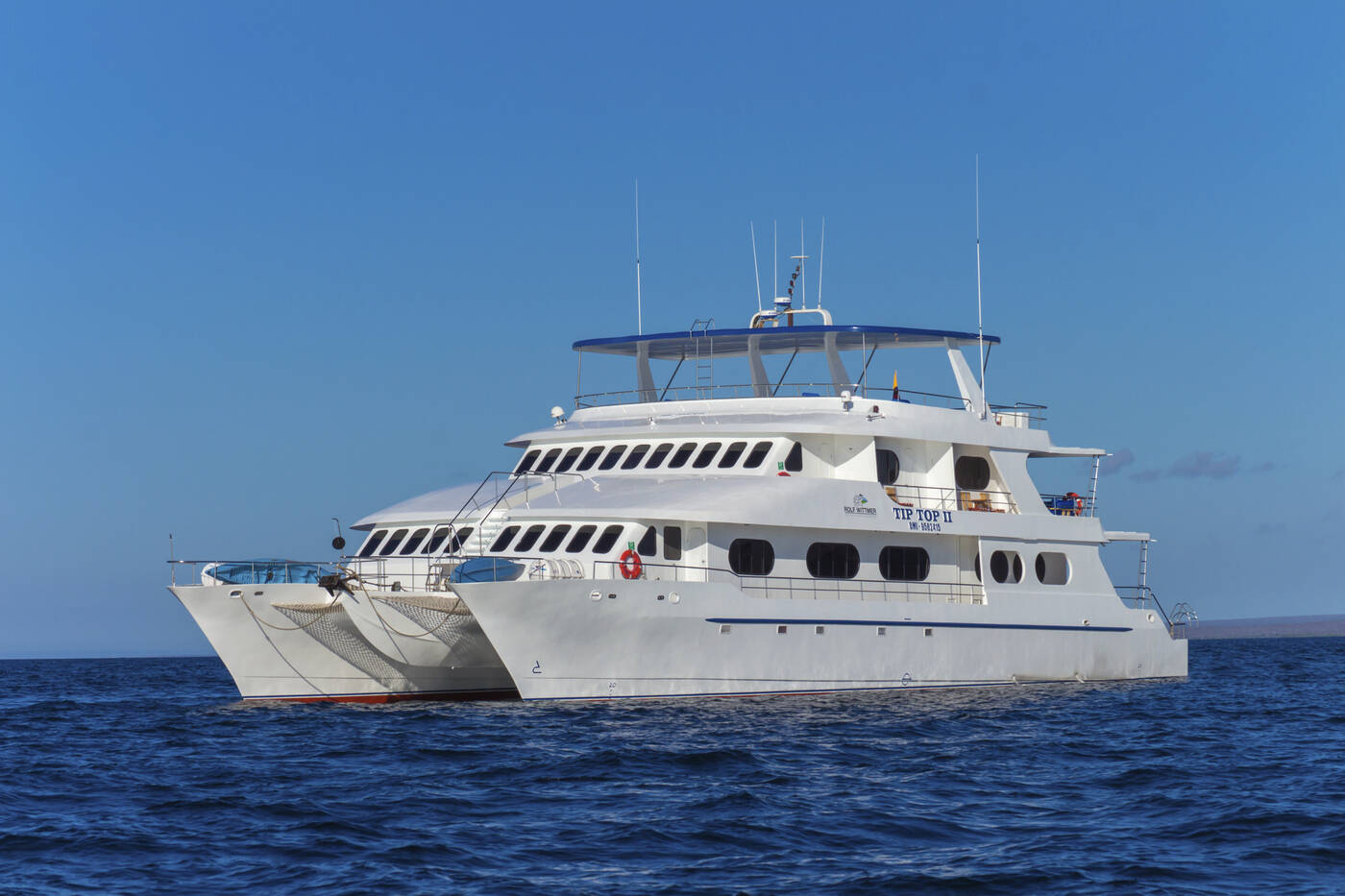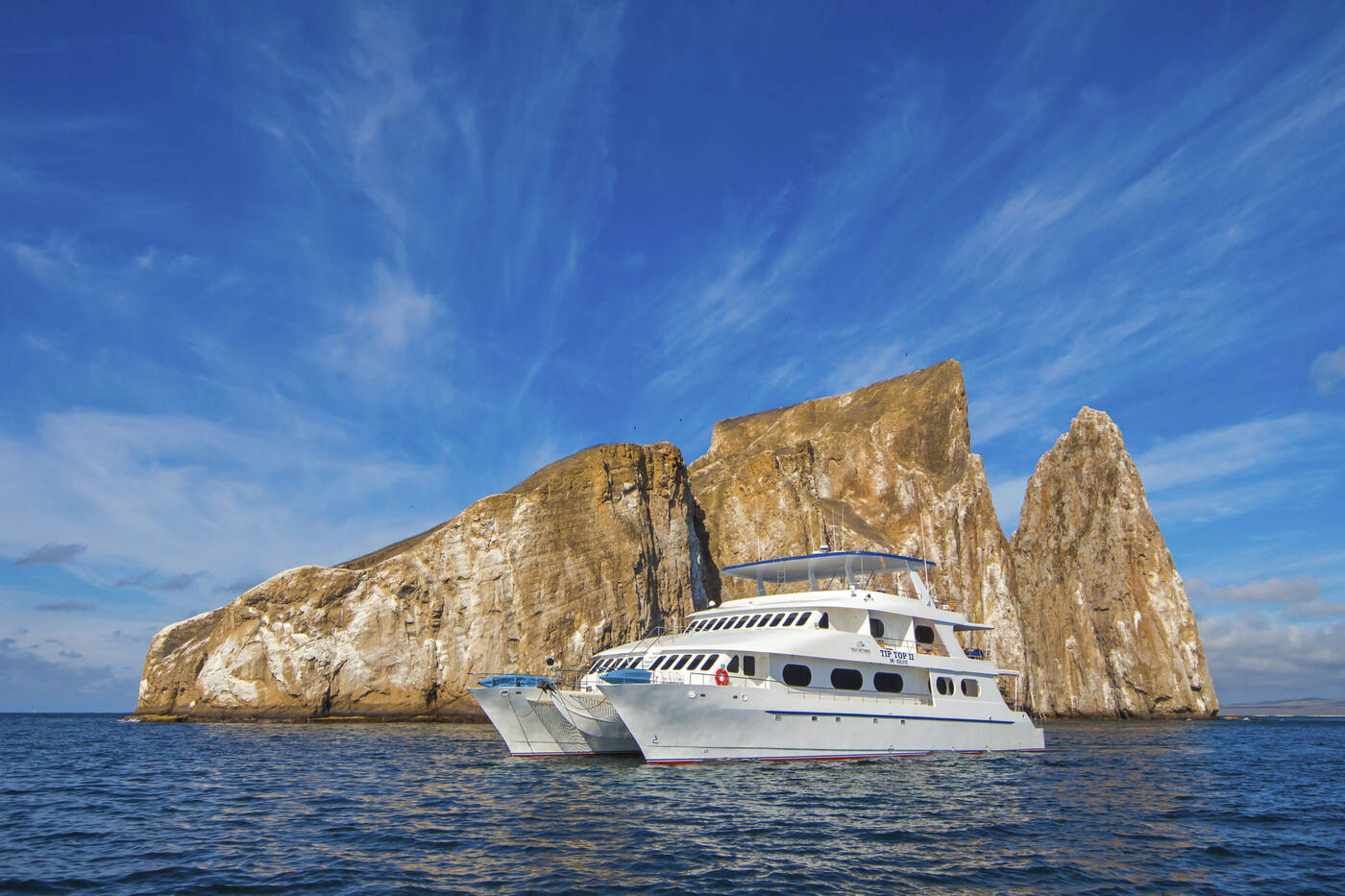 Für die einwöchige Galápagos-Kreuzfahrt nutzen wir die TIP TOP II, einen Katamaran für maximal 16 Passagiere, ausgestattet mit großzügigen Außenkabinen, privatem Bad und Balkon. Außenflächen, Sonnendeck, Lounge und Kajaks sorgen für Komfort und Entspannung.