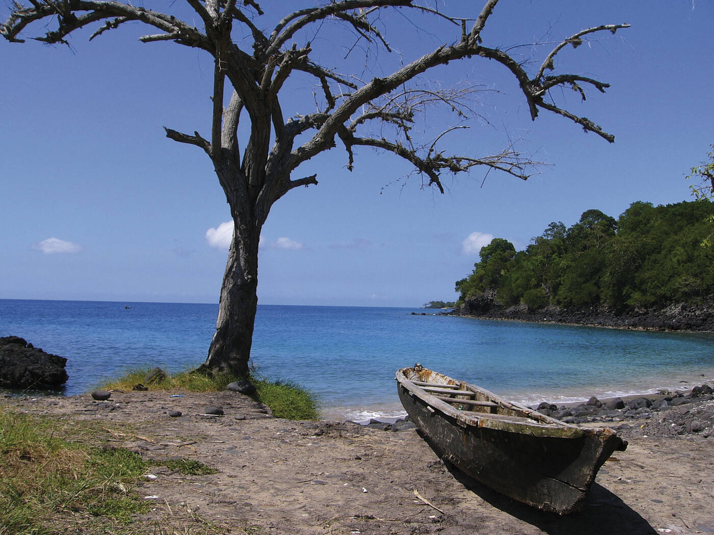 Bootsausflug zur winzigen Insel Rolas, die São Tomés Südspitze vorgelagert ist und fast vollständig von Kokosnusspalmen bedeckt ist. Nach einem kurzen Spaziergang überqueren wir die Äquatorlinie. Danach Erholung am malerischen palmengesäumten Strand. Spätnachmittags Rückfahrt nach Sao Tomé.