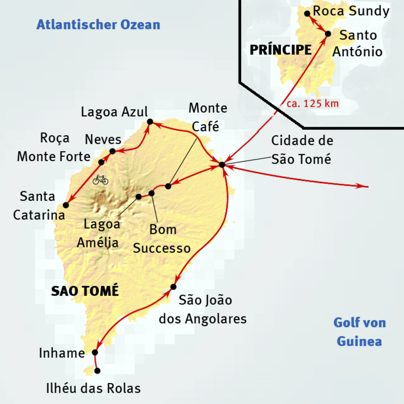 Sao Tomé - Cidade - Lagoa Amelia - Sao Joao dos Angolares - Sao Joa - Porto Alegre - Insel Rolas - Cidade - Insel Principe - Parque Natural Principe - Sao Tome - Angolar Wasserfall - Ribeira Palma - Neves - Roca Monte Forte - Neves