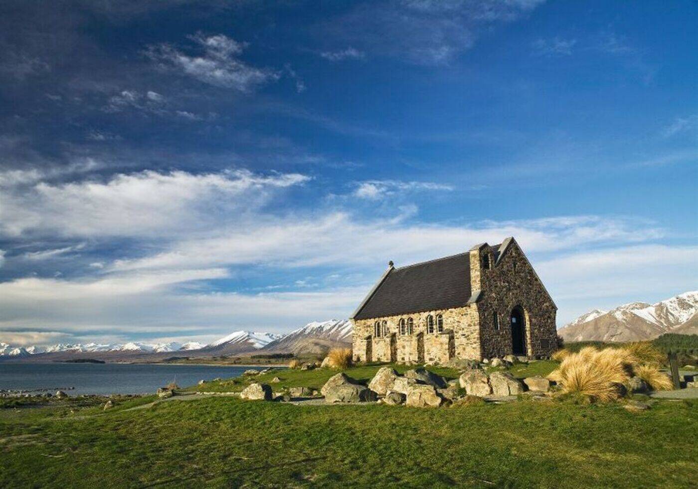 Durch das dünn besiedelte Tussok-Plateau des Mackenzie Country geht es in Richtung Norden zum Lake Tekapo. Bei gutem Wetter haben wir hier Gelegenheit zu einem Panorama- Rundflug (optional) über die schneebedeckten Bergmassive der Southern Alps. Doch auch am Boden erwartet uns eine tolle Aussicht: die bekannte Kapelle "Church of the Good Shepherd" vor grandiosem Alpenpanorama und tiefen Bergsee. Bald wechselt die Landschaft und wir fahren vorbei an saftigen Wiesen, Weiden und fruchtbarem Ackerland. Fairlie, Geraldine und Ashburton liegen am Weg, unaufgeregte, aber ertragreiche landwirtschaftliche Zentren. Ziel ist die die größte Stadt der Südinsel, Christchurch. Nach der Ankunft eine kurze Stadtrundfahrt.