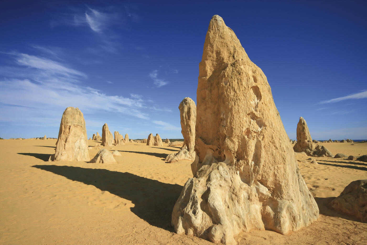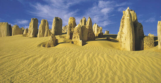 Morgens fahren wir zunächst zum Yanchep Nationalpark, wo wir sicherlich Kängurus und Koalas beobachten können. Weiter geht es dann nordwärts durch den Weizengürtel Australiens zum Nambung Nationalpark. Faszinierend sind hier die erodierten, bis zu 4,5 m hohen Kalksteinsäulen der "Pinnacles", die wie Grabsteine aus den Dünen ragen. Die Übernachtung erfolgt in Geraldton (430 km).