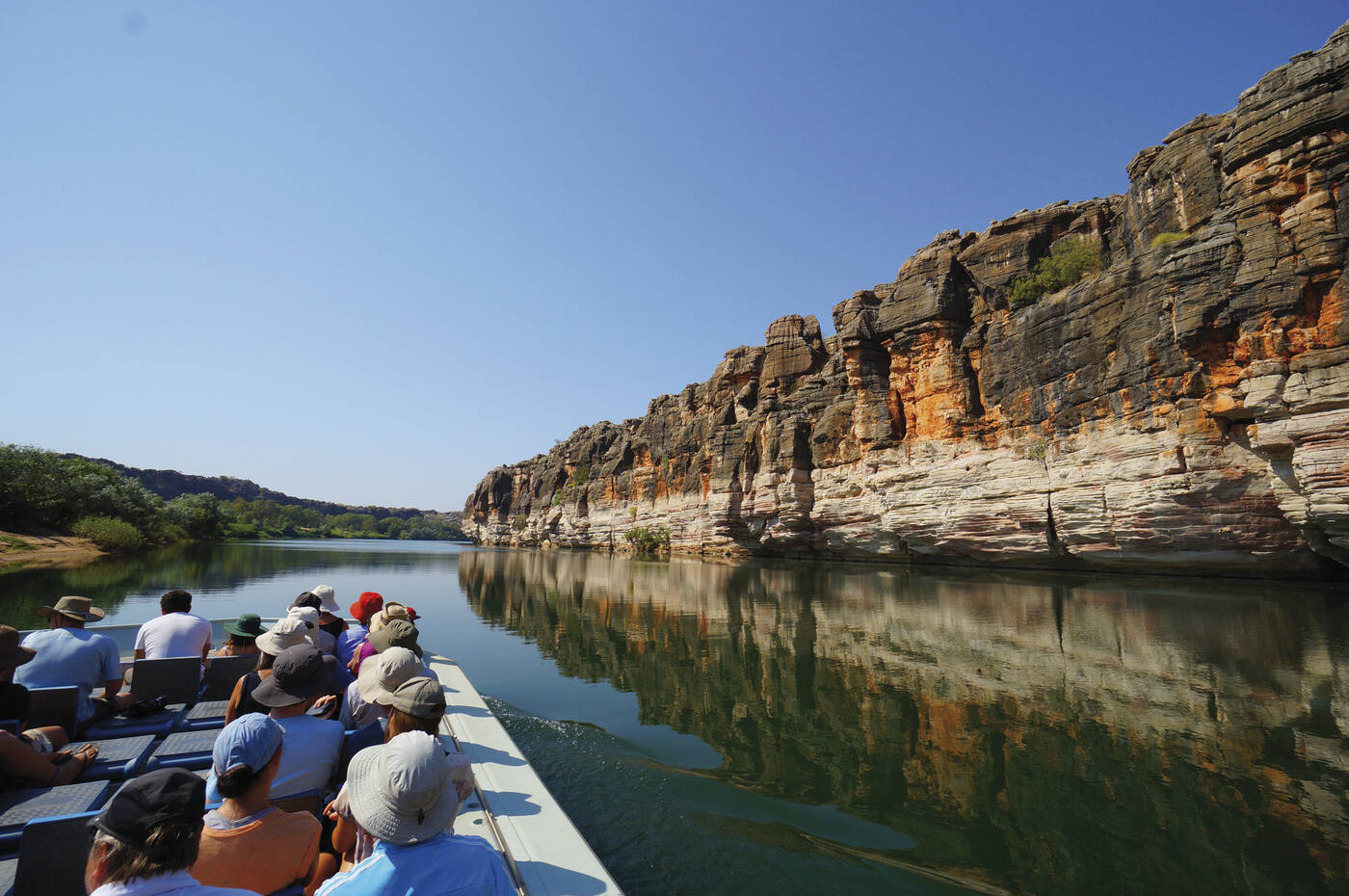 Besuch des Nitmiluk Nationalparks mit Bootsfahrt auf dem Katherine River, der durch bis zu 70 m hohe Sandsteinschluchten fließt. Hier leben Süßwasser-Krokodile, die mit ihrer markanten schmal-spitzen Schnauze zwar beeindruckend für den Besucher sind, jedoch deutlich weniger gefährlich wie das verwandte Salzwasser-Krokodil. Mittagsesen bei den Edith Falls. Anschließend Weiterfahrt auf dem Stuart Highway nordwärts bis nach Darwin (400 km).