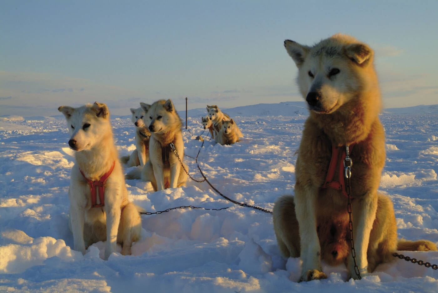 Der Hundeschlitten ist das bekannteste Wahrzeichen Grönlands und eine 1.000 Jahre alte Tradition der Inuit. Nicht viele Transportmittel haben so lange überlebt, ohne dass sich ihr Aussehen oder ihre Technologie geändert hätten: Ein Rudel fröhlicher Hunde vor einen einfachen Holzschlitten gespannt. Dieses Erlebnis kann man nicht erklären – man muss es erleben. Diese Tour (Dauer ca. 1,5 Std.) findet meist in einer Ebene in der Nähe von Ilulissat statt. Außer dem Kutscher steigen zwei Teilnehmer auf jeden Schlitten. Wenn ein Einzelticket gebucht wurde, wird der Schlitten mit einer anderen Person geteilt. Jede Tour ist anders. Deshalb können wir auch nicht garantieren, dass alle zusammen fahren können, wenn wir in einer Gruppe unterwegs sind. Der Ausflug ist leider nicht für Personen geeignet, die unter Nacken- oder Rückenproblemen leiden oder in ihrer Beweglichkeit eingeschränkt sind. Alle Teilnehmer müssen mindestens 12 Jahre alt sein.