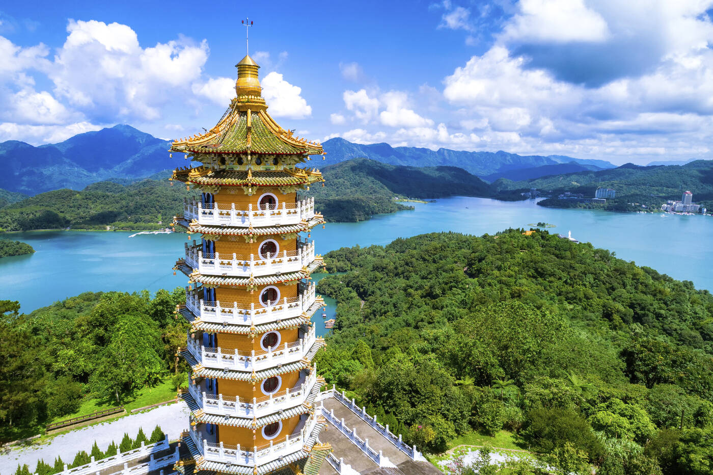 Fahrt zum malerischen Sonne-Mond-See, Taiwans größtem See. Private Bootsfahrt auf dem See mit herrlichem Ausblick auf die umliegende Landschaft. Besuch des Ita Thao-Indigenendorfes mit Einblicken in traditionelle Kultur. Besichtigung des imposanten Wenwu-Tempels, gewidmet dem Kriegsgott und Konfuzius.