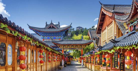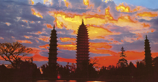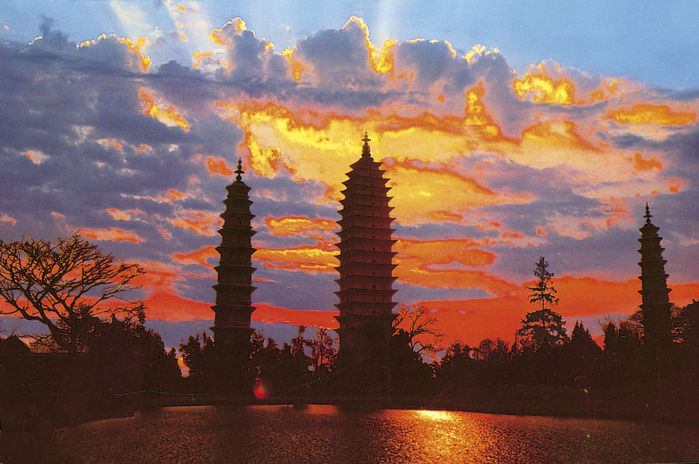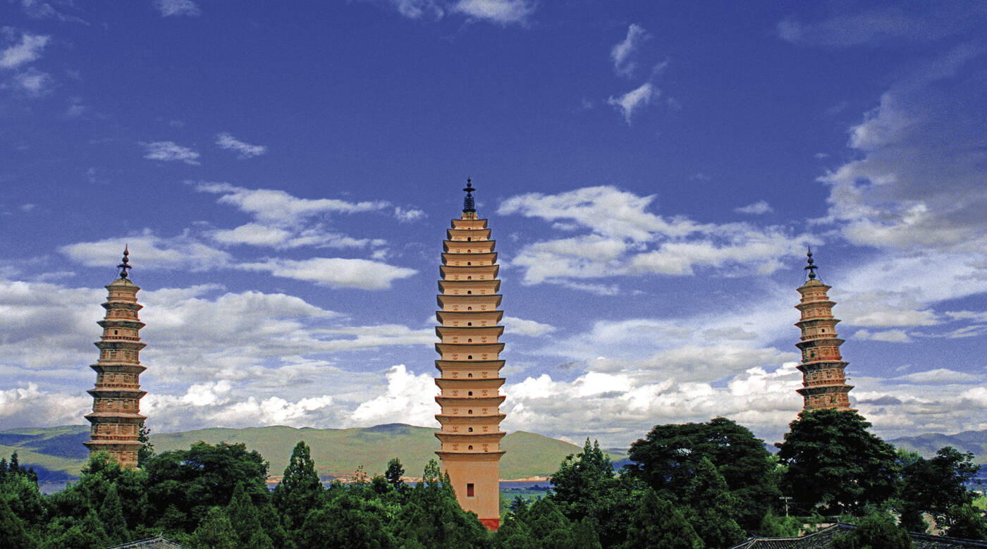 Besichtigung der daoistischen und buddhistischen Tempelanlagen auf dem Weibao-Berg. Am Nachmittag eine ca. 1,5-stündige Fahrt nach Dali, das aufgrund seiner reichen Geschichte und Kultur zu den kulturhistorisch bedeutsamsten Städten Chinas zählt. Ein Spaziergang in der pittoresken Altstadt, in der viele traditionelle Läden Tee, chinesische Medizin und Kunsthandwerk feilbieten. Der kulturelle Einfluss der Bai-Minorität findet sich überall in der Stadt wieder. Besonders ihre Vorliebe für mit eleganten Malereien verzierte Wände ist unverkennbar. Wahrzeichen der Stadt sind die drei alten Pagoden, die ein wunderbares Fotomotiv bieten.