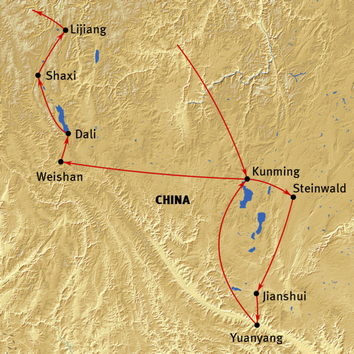 Kunming - Steinwald - Jianshui - Yuanyang - Kunming - Weishan - Dali - Shaxi - Lijiang
