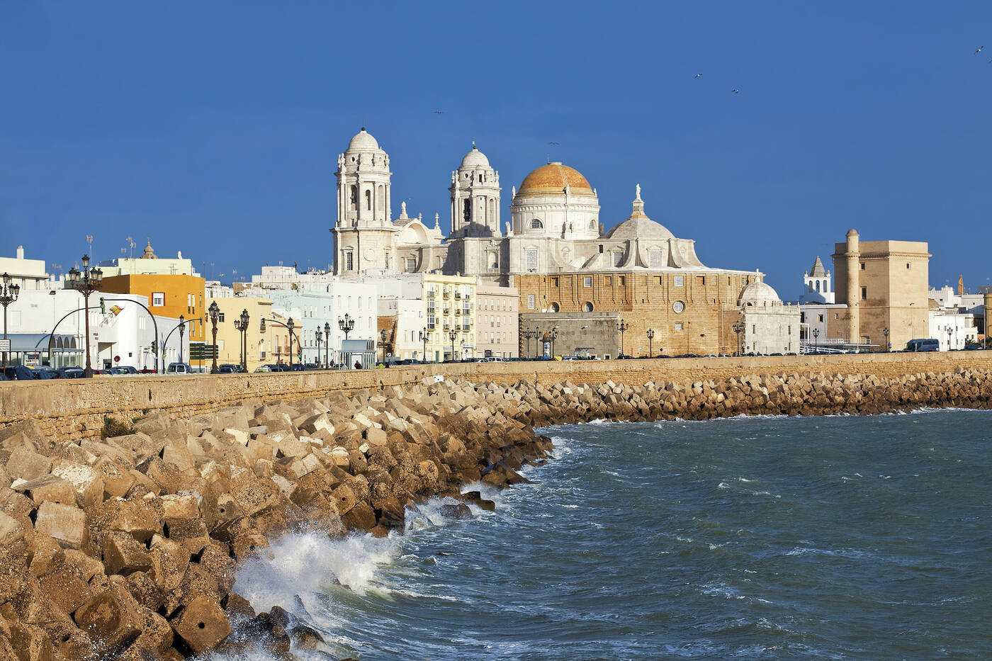 Fahrt nach Cadiz, angeblich die älteste Stadt Europas. Spaziergang durch die Altstadt mit dem quirligen Marktviertel, den historischen Gebäuden, Denkmälern und Gassen, die oftmals an wunderschönen Plätzen enden. Dann zur Kathedrale (von außen) sowie Außenbesuch des Torre Tavira. Wir fahren weiter entlang der Meerenge von Gibraltar nach Tarifa, südlichster Punkt Festland-Europas, und besuchen Vejer de la Frontera, eines der schönsten Weißen Dörfer an der Küste. Ein Spaziergang durch die typischen engen, weißgetünchten Gassen weckt Erinnerungen an die maurische Zeit.
